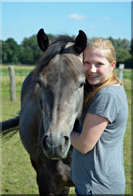 "Sophie" ist sehr bequem zu reiten und auch im Gelände absolut brav und zuverlässig.